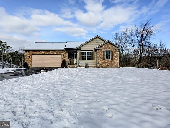 Welcome to this renovated rancher on 2+ acres complete with 2 car garage and stunning views of the neighboring golf course pond. This home features 3 bedrooms, 2 bathrooms, and many interior renovations including paint, flooring, and appliances, giving the home a fresh and modern feel. The kitchen features stainless steel appliances and a farmhouse sink. The eat-in dining area connects the kitchen and living room while featuring a sliding glass door that leads out to a spacious deck. Enjoy the warmth of the corner living room fireplace while admiring the gorgeous views. The finished basement features an accent wall, spacious entertaining area, storage space, and a full bathroom with a large jacuzzi tub and double vanity. Exterior features include storage sheds, outdoor wood stove, and open pole buildings.
