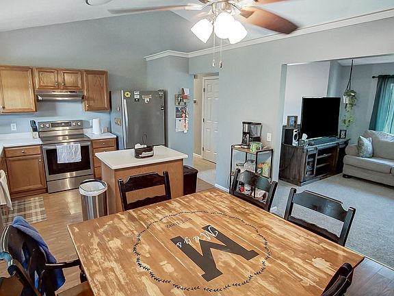 - Features: Walk-Out Access, Kitchen Island, Eat-in Kitchen, Wood Cabinets, Plank Flooring