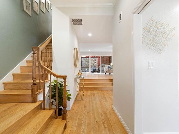 Elegant Los Gatos townhome offering luxury living just moments from downtown! This beautifully refined 3-bedroom, 2.5-bath residence features a spacious split-level living and dining area with gleaming refinished floors, fresh designer paint, and a cozy gas-starter fireplace perfect for entertaining. The gourmet kitchen showcases granite countertops, quality cabinetry, and ample workspace. Upstairs, natural light pours through skylights, complementing the serene ambiance. The luxurious primary suite is a true retreat with sweeping mountain views, a generous walk-in closet, and a spa-inspired bathroom with a large stall shower and light-up vanity mirror. Enjoy the convenience of upstairs laundry and unwind in the private backyard oasis complete with a tranquil waterfall feature. Nestled in a peaceful community behind downtown Los Gatos, this exquisite home combines modern comfort, elegant design, and an unbeatable location near fine dining, boutiques, and scenic trails.