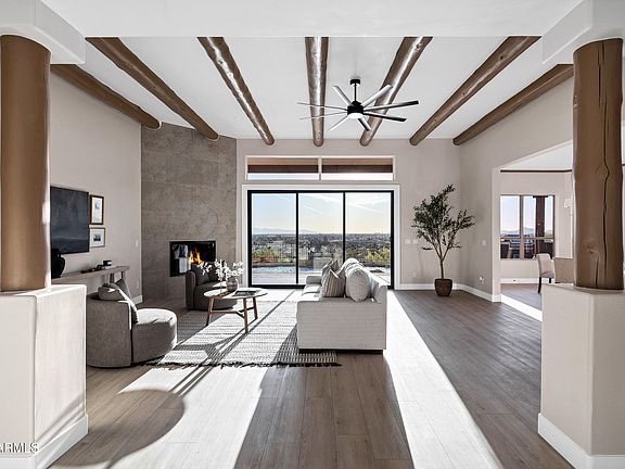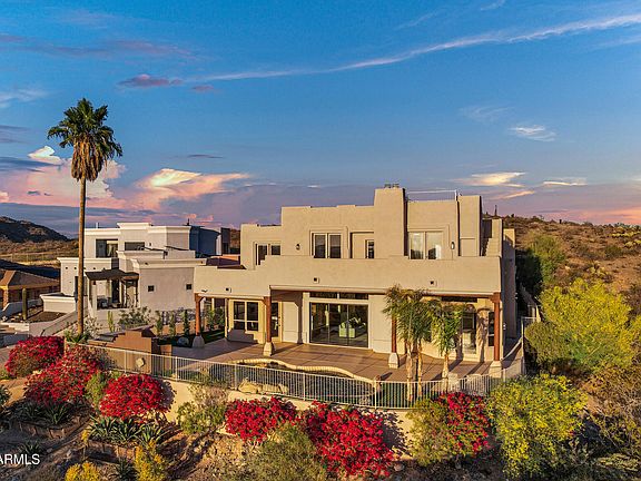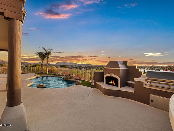 The highest home in the neighborhood - perfectly perched to capture 180° views of Phx! Newly renovated, this modern retreat blends style & comfort. SPARKLING pool w/ waterfall & rooftop deck. Enter through a brand new iron door & look directly out over all of Phx through your massive slider. Featuring an open-concept layout, designer finishes, & a chef's kitchen w/ beautiful white quartzite counters, new GE Café appliances, & white oak shaker cabinets. The spacious primary suite offers backyard access & a spa-like bathroom. Mother-in-law suite w/ full bath & separate entrance above your jumbo 3-car garage. Basketball hoop in your private driveway! Enjoy multiple patios w/ built-in BBQ & outdoor fireplace ideal for entertaining or relaxing as the city lights sparkle below! A rare find!