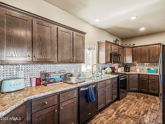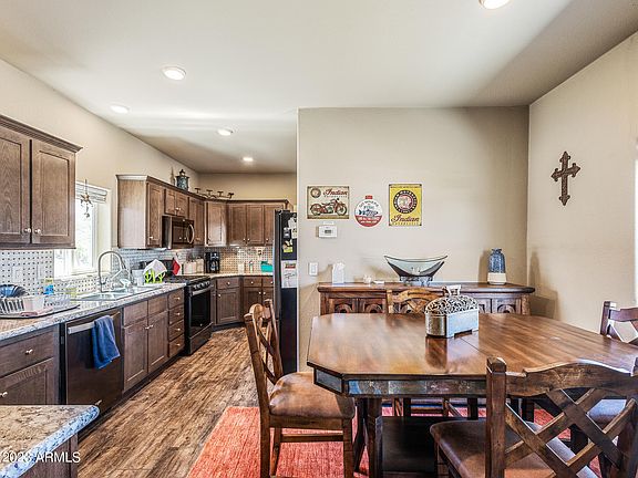 UPGRADES GALORE! You're going to be pleasantly surprised by this lovely & well-equipped home. Just 3 years new, it's warm & inviting w/ special features throughout. Grand arch between great room and dining area / kitchen has shelves for décor, tile backsplashes above all counters & owner's tub, and rich wood look floor brings a rustic feel. Trane A/C unit, water softener & RO system are additional perks. Beautiful kitchen has cabinets & storage for days, as well as a gas cooktop / range. The floor plan makes excellent use of square footage w/ good flow & spacious rooms. The property is entirely fenced & backyard has long concrete slab ready for your porch cover, as well as another slab for a shed, greenhouse or trailer parking. There's more than meets the eye with this well-priced home. Peeples Valley is just 35 minutes from Wickenburg, 45 minutes from Prescott and 1.5 hours from Phoenix. Nestled in the Weaver Mountains, you'll have easy access while still being away from it all. Tranquility and peace await. Enjoy blue skies, mountain breezes and lush, green pines. Lots of hiking opportunities. Peeples Valley is one of the best kept secrets in AZ. See for yourself!