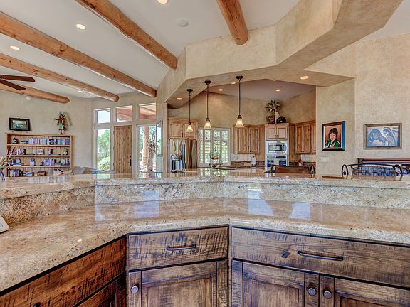 UPDATED SANTA FE, BACKS TO #17 TEE BOX ON THE PEAKS GOLF COURSE WITH MAGNIFICENT MOUNTAIN VIEWS. RESORT BACKYARD WITH PEBBLE TECH POOL, WATERFALL, HUGE COVERED PATIO PATIO STAMPED CONCRETE, FRUIT TREES, GARDEN AREA, & VIEW FENCE. GREAT ROOM WITH, 12 FT. CEILINGS, LODGE POLES, STACKED STONE GAS FIREPLACE, NICHE WALL, LARGE FLOOR TILE & 8 FT. SOLID WOOD DOORS THROUGHOUT THE ENTIRE HOUSE. KITCHEN DINING & BAR ARE ALL OPEN TO THE GREAT ROOM. JUST REMODELED WITH SS APPLIANCES, CONVECTION MICROWAVE, WARMING DRAWER, TRASH COMPACTOR, WALL OVEN, FRENCH DOOR REFRIG, DISHWASHER, SMOOTH COOK TOP, BEAUTIFUL SLAB GRANITE, HUGE ISLAND BREAKFAST BAR WITH PENDENT LIGHTS, 42'' CABINETS, TUMBLE STONE BACK SPLASH, WALK IN PANTRY, REVERSE OSMOSIS. DOUBLE DOORS LEAD TO THE MASTER SUITE WITH DOUBLE TRAY CEILING.
