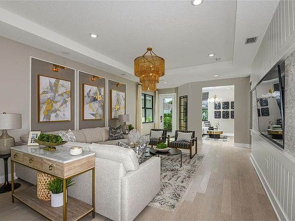 Pre-Construction. To be built. Cresswind Lakewood Ranch by Kolter Homes is an exclusive gated community in Lakewood Ranch, Florida, designed for active adults seeking new energy-efficient homes and low-maintenance living. Residents enjoy a pet-friendly environment, scenic walkways, and access to a private lakeside clubhouse with organized activities, flexible event spaces, fitness and yoga studios, and creative art facilities. Outdoor amenities include pickleball, tennis, bocce, resort-style pools, a dog park, food truck court, and social areas. Located in Sarasota/Bradenton, the community offers proximity to beaches, shopping, dining, and cultural attractions, making it an ideal choice for those searching for vibrant, resort-style living on Florida’s Cultural Coast. Experience the perfect blend of comfort, style, and convenience in the Summerland floorplan at Cresswind Lakewood Ranch. This modern, single-story home features an open-concept layout with a spacious Great Room and a well-appointed Kitchen at the rear—designed for effortless entertaining and everyday living. The Kitchen boasts GE stainless steel appliances, generous cabinet and granite countertop space, a breakfast bar for casual dining, and easy access to a large Covered Lanai, ideal for outdoor dining and relaxation. The luxurious Master Suite includes dual granite vanities, a frameless glass shower, large walk-in closet, and serene views of the Lanai. A private guest wing at the front of the home offers a comfortable Second Bedroom and Full Bath, perfect for family or visitors. The versatile Den can be used as a home office or flex space, with options for double doors to increase privacy. Personalize your Summerland with structural options to suit your lifestyle needs. Located in a vibrant, amenity-rich community, this energy-efficient home is perfect for buyers seeking functional design, upgraded features, and a seamless indoor-outdoor living experience.