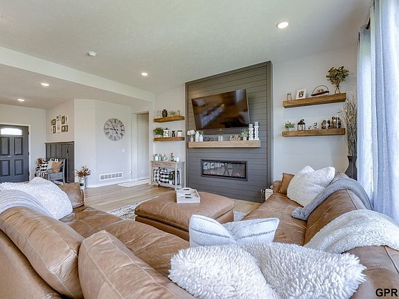 *Open House Sunday 12-2PM*Fall in love with this Millard ranch home on a quiet street just off Giles! Enjoy beautiful landscaping and a privacy fence all summer long. Shed in backyard provides extra storage for lawn tools. Inside has tons of custom designs and finishes - upgraded after build. Including a new shiplap mantle, accent walls through, custom built-in entertainment center and custom blinds throughout. Primary bedroom features accent wall, attached suite with double sinks and shower plus a massive walk-in closet. Fully finished lower level has fireplace feature with huge windows, wetbar and tons of space - plus an additional bedroom, non-conforming space and bathroom. Additional special touches include: Built in doggie door in basement, Metal roofing cover under deck for patio, exterior door direct from garage, 100 amp sub panel in the garage, new Anderson storm door & screen door. You'll have to see this one to appreciate the meticulous care and thoughtful details throughout!