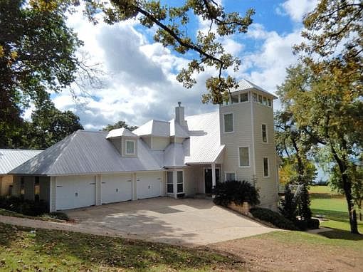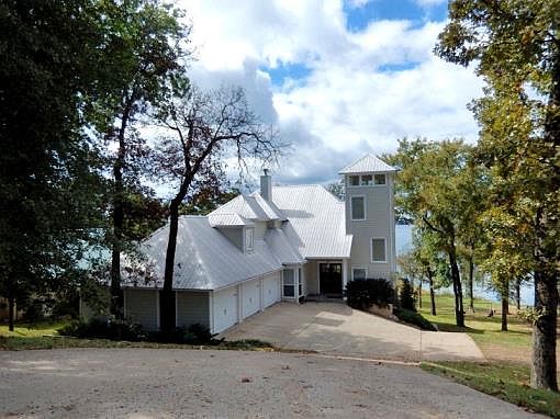 Breathtaking waterfront property on peninsula with approximatly 426' of shoreline! This 4248 sq. ft. home is light & bright with 3 bdrm, 3 bath. Open living (WBFP)/dining/kitchen & guest bedrooms on main floor. Game room with full bath and bar area on lower floor opens to the landscaped pool & hot tub. 3 car garage and basement with garage door providing incredible storage! Huge master suite covers 2nd floor with wall of windows, remote control curtains & incredible views of Lake Palestine! Bonus Room off Master Bath can be used as Exercise Room, Office, or Nursery. Existing boathouse located on south side of peninsula provides one electric lift and extra lot north of property provides space for large boathouse and/or guest cottage. Level lot is perfect waterfront space for volleyball, shuffleboard & more! With approx. .72 acres above the 355' elevation, your family and friends have plenty of space to enjoy this fabulous waterfront beauty!