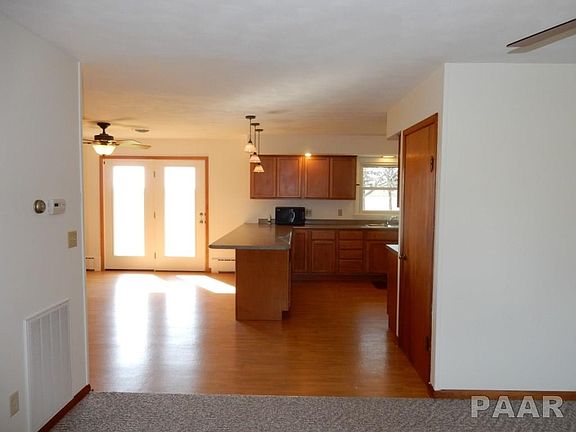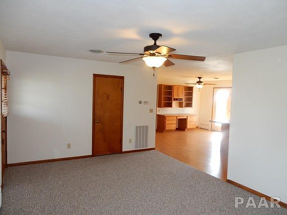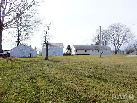 Enjoy beautiful sunsets in this 3 bedroom ranch home situated on 1.15 acre. Home is turn key & has been very well maintained. Updates include energy efficient windows, french doors, high seer central A/C system, updated kitchen, vinyl flooring, carpet in living rm & bedrms, and updated bathroom. Spacious kitchen boasts maple KraftMaid cabinetry w/soft close drawers & breakfast bar. Dining room showcases a beautiful built in desk/hutch with functional storage. Attached garage has an overhead door at each end. Detached garage and barn are great for additional storage or workshops.
