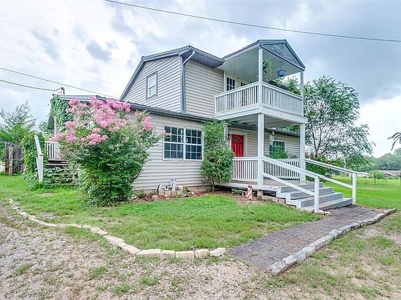 This one is ready for you that is if you are looking for over 10 acres, barns, stocked pond, fruit trees walking trails and so much more. The home has been updated and has a split and open floor plan. Top floor is a private primary bedroom with and ensuite and private balcony. In addition there is a workshop or garage your choice as well as a car port for covered parking. Don't miss this opportunity to own your piece of Oklahoma land.