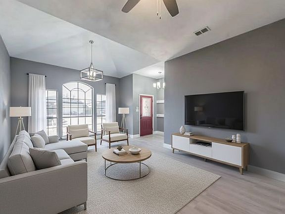 Beautiful home that offers a great open floor plan with durable waterproof laminate flooring in the living areas, marble epoxy flooring in the two full bathrooms, and carpet in bedrooms. The open concept features vaulted ceilings in the living areas. The master suite features a large walk-in closet while the master bath features a dual-sink granite top vanity, garden tub with tile surround, and a separate shower. The kitchen features modern white cabinets with granite counter-tops and stainless-steel LG appliances. Large 300 sq. ft. covered patio in the backyard with a shed for storage. Motivated seller; opened to all offers!! Schedule a showing today!!