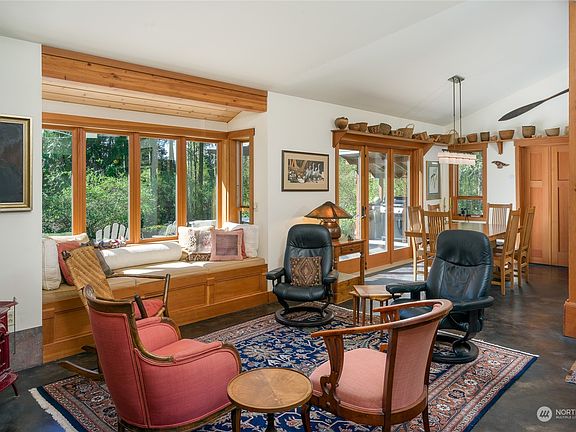 NORTH ISLAND GEM---5 acres with well-built, custom 1 bedroom, 1.5 bath home and studio. This passive solar home has many extras--vaulted ceilings, clear fir trim & doors, skylights, radiant heated floors, clerestory windows, soapstone counters, window seat & garden window in the shower. Bonus room with deck door adds flexible space. Large, southern exposure deck & wood stove patio are perfect for entertaining or watching nature in the woodlands. Separate art studio with pine walls incl guest space & 3/4 bath. Fenced garden area & berry patch. Storage bldg & carport. Conveniently located near the Village & not far from the ferry. Your personal oasis.