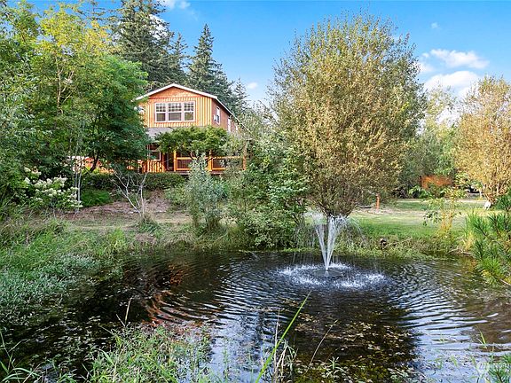 Tucked away on a private 5+ acre lot just minutes to Barkley Village is this unique custom built home designed by the owner. The moment you set foot on this property you feel at peace. The park like setting and stunning gardens w/ multiple fruit trees, 2 ponds w/ fountains and stunning grounds were all designed by the owner a master gardener. The custom treehouse, a glamping site, a chicken coop with aviary, a greenhouse w/ power and outdoor entertaining area w/ pizza oven makes this your private oasis. The home itself has been updated with solar panels, a newer roof, a tankless water heater and new paint throughout. The wrap around deck with a hot tub is the perfect place to unwind and enjoy nature at the end of a long day.