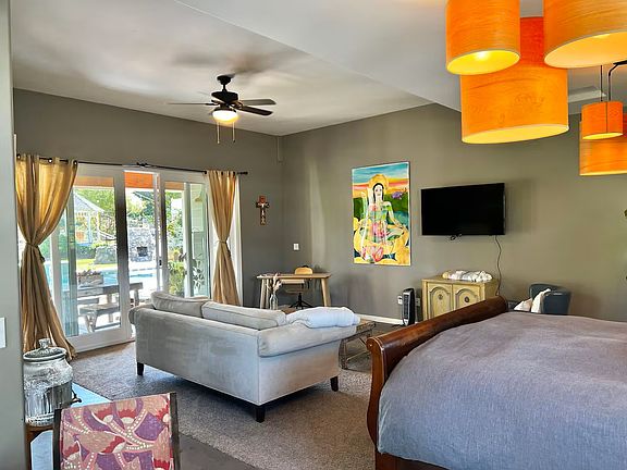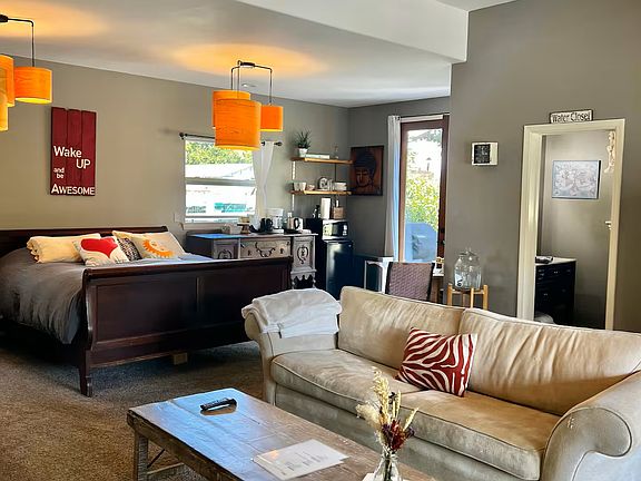 This is a "Studio" apt. High ceilings, big windows. It is directly under the upstairs Barn unit. Located on a dirt road, in the country on 2 1/2 acres, just minutes from the most beautiful beaches on the Central Coast. This is a cozy space, with a coffee pot , microwave, tea pot, toaster, small fridge, TV, WIFI. Large glass sliding doors overlook pool