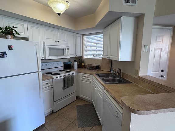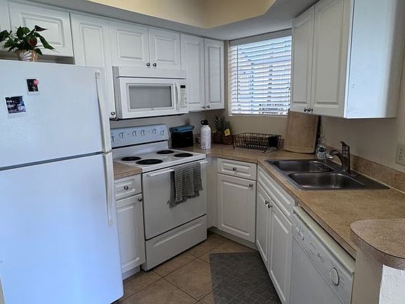 Step inside to find gleaming tile floors throughout, a modern kitchen and upgraded bathrooms, and spacious walk-in closets in both bedrooms. The open dining and living area flows effortlessly onto your private patio with peaceful lake views the perfect spot to sip your morning coffee or unwind after a day in the sun.