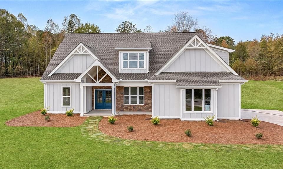 Be home for the Holidays in your gorgeous new construction home! Welcome to the Embry Hills Plan, a true craftsman design in a stunning custom-built home that perfectly blends luxury, comfort, and convenience. Set on nearly an acre with no HOA, this home offers thoughtfully designed living space and timeless craftsmanship - all within Jefferson city limits. Step inside to a bright, open floor plan featuring engineered hardwood flooring throughout the main level. The heart of the home is the chef's kitchen, complete with custom cabinetry, granite countertops, and an oversized island, all overlooking the inviting family room with large windows and a cozy wood-burning fireplace - ideal for gatherings or quiet evenings at home. The main-level master suite is a true retreat, boasting a spa-inspired ensuite bath with dual vanities, a soaking tub, and a large walk-in shower. The large custom master closet combines luxury with everyday functionality. Also on the main level is a versatile flex space, perfect for a home office or guest room, along with a full guest bath. Upstairs, you'll find two additional bedrooms, a full bath, and a large bonus room that could easily serve as an additional bedroom, playroom, or media space. Built with durable Hardy board siding and backed by a trusted 30-year home builder, this home is designed to impress and built to last. Desirable location located within the city limits, yet on a gorgeous country road. The venue across the street looks like a postcard from your front windows. Minutes to I85, the city schools, and shopping. Don't let this one slip away.