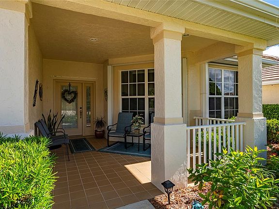 Rare Opportunity: Assume a VA Loan at Just 3.25%! Imagine stepping into your Florida dream home with a mortgage rate well below today’s market—an incredible chance to lock in savings while enjoying the comfort and style of this 3-bedroom, 2-bath, 2-car garage Peter Schipps–built residence in the gated community of Villas at Charleston Park, North Port. Being sold with most furnishings in fresh nautical colors! Don’t miss your opportunity to see this well-designed home featuring a large great room and dining room combination, ceramic tile flooring throughout, and a split bedroom floor plan offering privacy for owners and guests alike. The master suite includes a walk-in closet, tiled walk-in shower, and dual vanities. A pocket door separates the guest wing with its own bed and bath, while a bonus room up front makes a perfect office, den, or additional bedroom. The kitchen has been thoughtfully updated with a new sink, counters, touch-free faucet, and built-in soap dispensers. You’ll also find Corian counters, painted thermofoil cabinets, and a cozy eat-in area—plus all appliances are included. From the kitchen or great room, step out through sliding doors to a spacious vinyl-window screened lanai overlooking the backyard, perfect for year-round enjoyment. Additional highlights include a 2018 AC system, mana bloc plumbing, laundry room with sink and cabinets, and a garage with storage cabinetry and door opener. The Villas at Charleston Park is maintenance-free, with HOA services covering mowing, mulching, irrigation, roof cleaning, exterior painting, and basic cable TV. Resort-style amenities include a pool, fitness center, library, billiards, clubhouse gatherings, and more—all close to beaches, restaurants, schools, City Hall, and the Atlanta Braves Training Stadium.