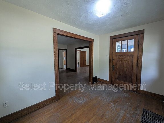 This charming home welcomes you in off a covered front porch. The front room is perfect for a plant lover, reading nook and more, with beautiful natural light! This main floor home boasts the original 1925 woodwork and wood floors. Spacious, spacious, spacious! The grand living room and dining room offer charm and plenty of space for versatile living options. The vintage kitchen and bathroom add to the historic charm of this great home! The kitchen offers space and storage in abundance! The bathroom's original blue tile is a delight! Extra storage will be discovered down the hallway that leads to the two bedrooms, both with spacious closets. Adding to the functionality and storage options, the large basement also boasts the convenience of a washer and dryer. The detached shared garage provides one off street parking space for your convenience.