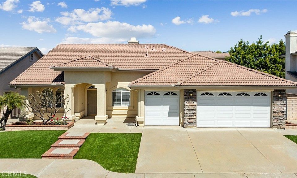 The homes exterior features new stucco paint, turf lawn, a concrete tile roof and a large patio in the backyard. The attached three car garage also has some storage cabinets. Hurry this turnkey home won't last.