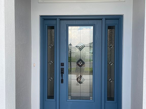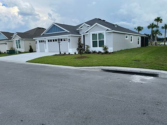 This stunning brand new 3-bed, 3-bath home sits directly on the Woodlands Championship Golf Course, offering breathtaking golf course and long water views from your private backyard oasis. Just 2 miles from the exciting Eastport development, the home features luxury vinyl plank flooring, stretched master, lanai and garage, and modern lighting throughout. The open kitchen boasts quartz countertops, tile backsplash, a gas stove, and ample cabinetry. The spacious primary suite is a relaxing retreat, while two private guest suites on opposite sides of the home offer comfort and privacy for visitors. Go outside to your custom heated T&D saltwater pool -perfect for refreshing dips in summer or cozy swims in cooler months. The screened lanai provides privacy and space to relax or entertain while enjoying expansive golf course views. Don't miss this rare opportunity to own a home in one of The Villages' most desirable locations.
