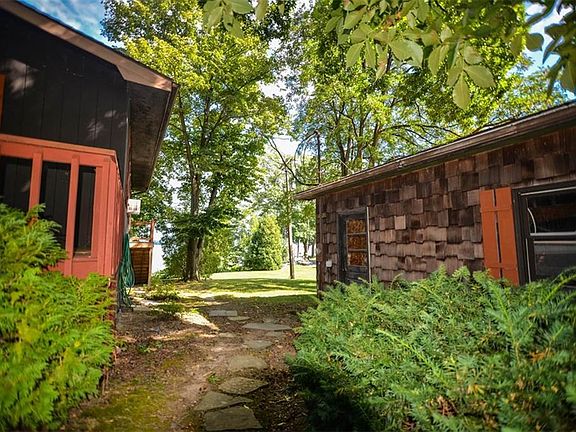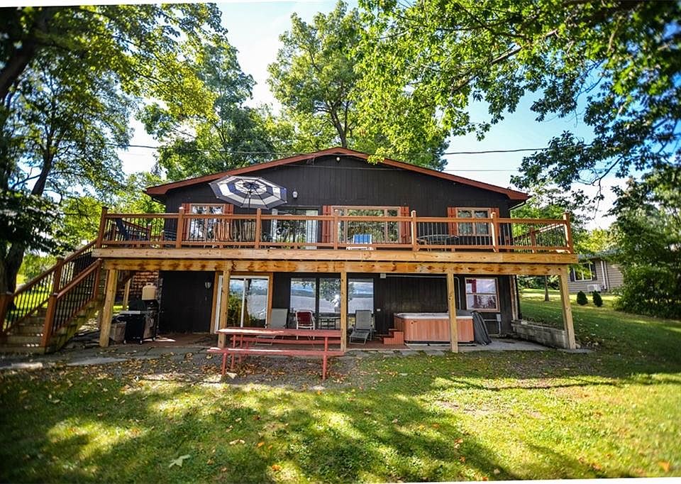 Level, cove beachfront with 108' of prime, natural lakefront, and gradual depth! This charming, year-round home is located in the heart of the Seneca Wine Trail, just a short trip to Geneva and Penn Yan. A picturesque drive down the lake to Watkins Glen brings you to the Glen Gorge, quaint shopping and Watkins Glen Speedway. The open floor plan provides welcoming lake views, the open kitchen and dining room lead into a cozy living room with a fireplace and large, lake view picture windows. Sliding doors lead tot he deck overlooking the lake. The master suite also has a lovely lake view, as does one of the bedrooms on the lower level of the home. There is a great patio with a hot tub, and a permanent dock perfect for swimming or fishing! Hurry, this one is going to go quickly!