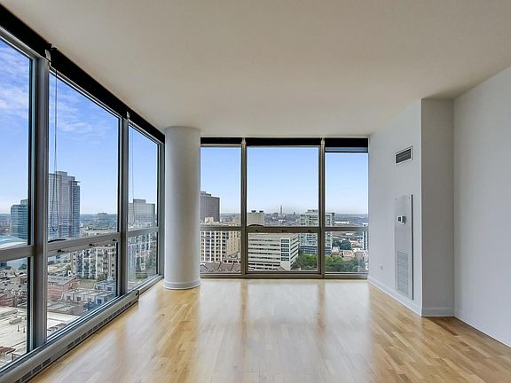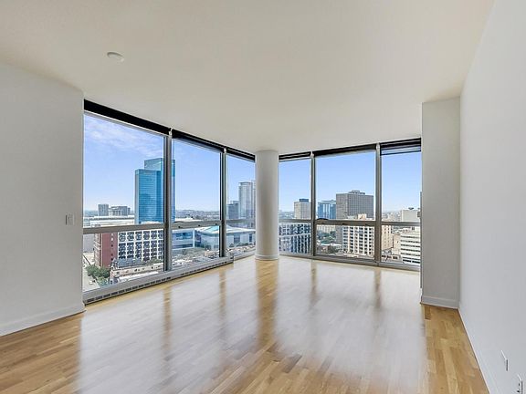 Spacious, sunny corner two bedroom and two bath unit in full amenity luxury building with garage parking included. Enjoy city & sunset views from the floor to ceiling windows in this corner condo. Open kitchen with breakfast bar and maple cabinets. Unit features Washer/Dryer in unit, balcony, spacious room sizes, good closet space, floor to ceiling windows. Full amenity building with rooftop pool, sundeck, community room, exercise room, 24 hour doorman. Garage Parking Included!