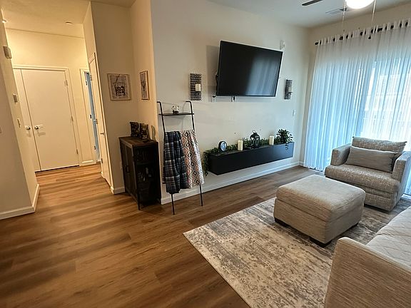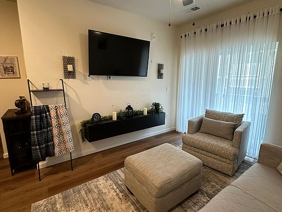 All the amenities you would expect in a fully furnished 2 bed, 2 bath, built in 2021. This property is immaculate. It feels spacious with the 9 ft. Ceilings and open floor plan. The large windows and patio door bring in a ton of natural light for entertaining in your cozy living area.