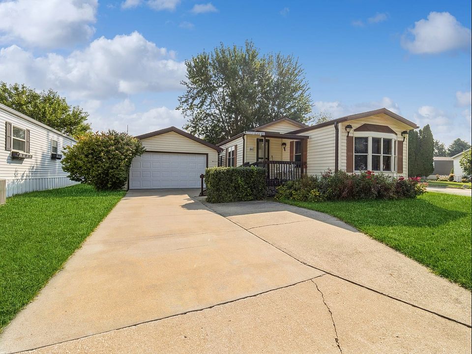 1986 Victorian double wide 2 bedroom, 2 bath, 1232 sqft, 2 car detached garage, covered front porch, newer plank flooring throughout living areas . Formal dining area, Nice size living room, Bedrooms have their own bathrooms. All appliances are included and washer and dryer. Home is on a corner lot, Selling AS IS. Lot rent $850 monthly plus utilities. Subject to Park approval. 2024-09-30