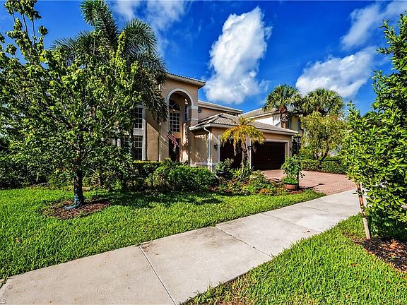 Step into timeless elegance in this 4,034 sq. ft. estate home in the highly sought-after gated community of Saturnia Lakes in Naples, Florida. Perfectly situated on a rare oversized corner lot with coveted southern exposure, this residence was designed for both everyday comfort and grand entertaining. The impressive two-story entry opens to 22-foot ceilings, a wrought-iron and hardwood staircase, and two stunning fireplaces framed with granite and stone mantels. A versatile loft overlooks the formal living and dining areas, while the open-concept family room and gourmet kitchen—complete with granite countertops, custom cabinetry, and stainless appliances—make gatherings effortless. Offering 4 bedrooms plus a den, 4 full baths, and a loft, this spacious floor plan ensures room for everyone. The luxurious primary suite is a true retreat with dual walk-in closets, sitting area, and a spa-inspired bath. Step outside to your private oasis with a screened lanai, oversized pool, spa, and extended patio spaces—perfect for morning coffee or evening entertaining under the Florida sky. Residents of Saturnia Lakes enjoy resort-style amenities including three pools (resort, lap, and kiddie), a full-service clubhouse with café, fitness center, dance and yoga studios, billiards, card room, and social hall. Outdoor enthusiasts will love the tennis courts, basketball courts, and playground. All of this just 15 minutes to white sand beaches, world-class dining, and shopping in Naples. Experience luxury living, unmatched amenities, and one of the best values in North Naples. Welcome home to Saturnia Lakes.