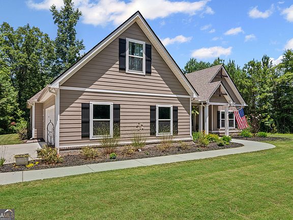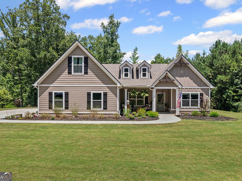 FABULOUS CRAFTSMAN STYLE HOME ON 2.5 ACRE LOT!! Open floor plan with large kitchen w/quartz countertops, tiled backsplash, stainless appliances, large quartz top island w/stainless farm sink, breakfast bar & LVP hardwood flooring. Family room is open to the kitchen w/a trey ceiling w/wood beams & LVP hardwood flooring. Vaulted keeping room w/brick surround fireplace & LVP hardwood flooring. Primary bedroom on main w/walk-in closet. Tiled primary bathroom w/quartz top double vanity, garden tub w/tiled surround, tiled shower w/framed glass. 2 Guest bedrooms on main q/tiled guest bathroom w/quartz top vanity & shower/tub. 3rd Guest bedroom upstairs w/walk-in closet & tiled guest bathroom w/quartz top vanity & shower/tub. 2 Covered porches on the back of the house overlooking private backyard. Covered front porch. Foam insulation . Split bedroom plan. Located in North Coweta County and in top rated school districts! Minutes from I-85!