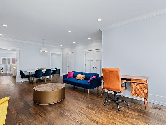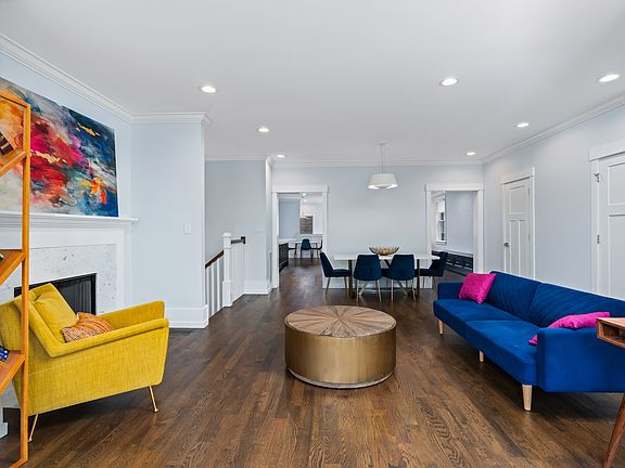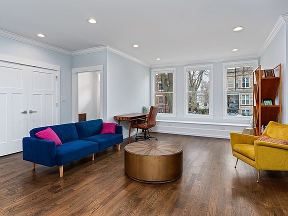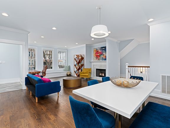 Nestled in the heart of Roscoe Village, one of Chicago's most sought-after neighborhoods, this stunning duplex-down on a 37.5' overside lot offers the epitome of modern luxury living. Built in 2017, this home boasts a contemporary design and meticulous attention to detail, making it feel like new. Step inside to discover a light-filled interior with gleaming hardwood floors that lead you through two open and inviting living spaces. The gourmet kitchen is a chef's dream, featuring high-end Wolf and Subzero appliances, perfect for preparing meals and entertaining guests. From your kitchen overlook the family room, which offers access to a large patio, ideal for indoor/outdoor living or just relax in the spacious living room by a cozy fireplace. The lower level features radiant floor heating, ensuring your comfort throughout the year. Retreat to the expansive primary suite, complete with a spa-like bath, separate shower, soaking tub, and a large walk-in closet with custom organizers. With three additional bedrooms and two additional bathrooms, there is plenty of space for family and guests. This home offers an incredible interior width, providing a sense of space and privacy that is rare in the city. With parking for 2-cars and full garage roof deck rights this home truly gives the sense of single family home living. Proximity to the CTA's Addison Brown line stop, salons, shopping, entertainment, and trendy restaurants make this location truly unbeatable. Being located within the top-rated CPS school Hamilton Elementary neighborhood boundaries, make this home the perfect choice for those seeking luxury and convenience.
