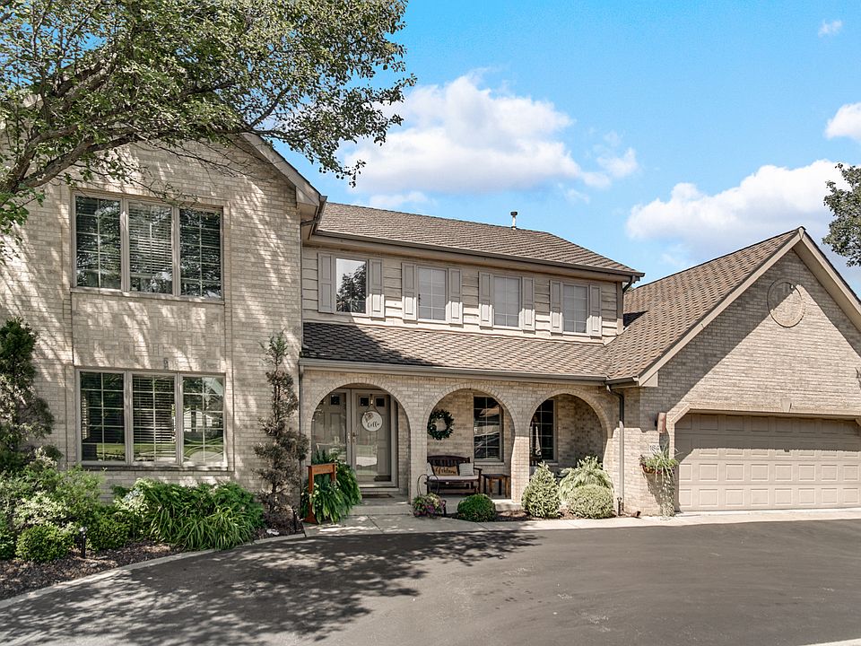 Beautiful Brick 2 story with Circle drive/ Walk into a large foyer, Living room with french doors to main level family room with fireplace/ Family room opens up to large updated kitchen with breakfast bar, plenty of cabinets and granite countertops/ 1/2 bath on main level, plus a separate dining room which is used as a home office, with french doors for privacy/ Large bedrooms on 2nd level, Main bedroom features walk-in closet, private bathroom / Finished basement with rec room, work room, Large laundry room and your own WINE CELLAR/ back yard paradise with 18 x42 Teak and cedar deck with Arbor, gas line under the deck for gas grill or firepit/ Plus a large shed and 2-year-old pool!/ Furnace and Central Air 2022/ 45-year shingles on roof/Garage door 2 years with MYQ remote app/Hot water heater 2020/ Dryer 2 years, Washer New, Refrigerator 3 years/ Sprinkler system/ Circle drive and side drive can accommodate 5 cars/Please no private videos/ Cameras in the home/