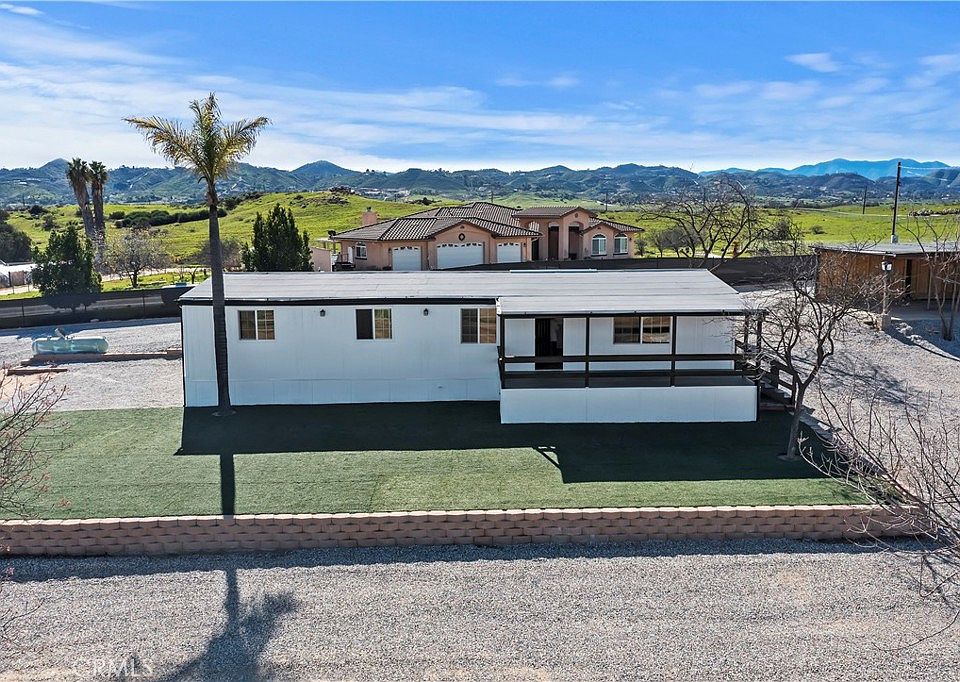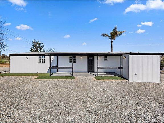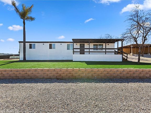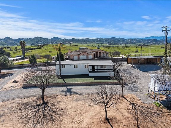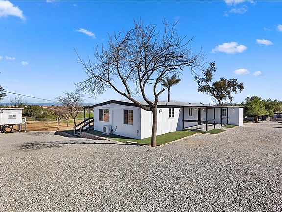 LOCATION, LOCATION, LOCATION, in the Mockingbird Canyon Area. This Lovely Manufactured Home has been completely remodeled, everything brandnew. Modern Touches...The best part is that home is located on 2.07 acres of usuable land (R-A-1 zoning). This beautifull Home features 3-bedrooms, with an extra 4th room can be used as a gym or an office, 2 bathrooms. OPEN FLOOR PLAN, Kitchen flows into the living room area to enjoy those family dinners. Kitchen has new cabinets, quartz counter tops, new stove, mircrowave, refrigerator, plenty of cabiney space, bathrooms feature new vanities and new LED wall mirriors with antifog function, recessed lighting through-out the home, 2 mini-split units, new watereproof vinyl plank/flooring, new dual pane windows, new roof, new Septic system, new water heater, separate spacious laundry room area. Not many homes like this one. Home is fullly gated, lots of privacy with beautiful views, Carport with separate storage area that can be used as a man-cave, craftroom, etc. Lots and Lots of parking space, and a Tree House!. Endless possibilities, You can also built another home and/or place another manufactured home for extended family (LOT ZONED R-A-1-VERIFY WITH COUNTY OF RIVERSIDE FOR REQUIREMENTS). THIS IS A MUST SEE!!