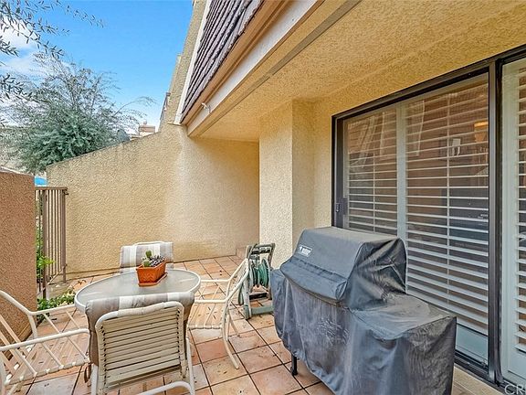 Welcome to this charming town home complex punctuated with beautiful landscaping offering roses, trees, flowers and greenery throughout. Enter the unit through the large private patio great for barbecues or to enjoy sitting outside. The living room has sliding glass doors with wood shutters opening to the patio. A gas fireplace punctuated with marble trim creates a lovely focus point.As you ascend the first level of stairs you are welcomed to the dining area with wide open views of the living room and the beautifully remodeled kitchen with manufactured wood flooring on the kitchen and dining room level.The two bedrooms up stairs each have large walk in closets and each has a private bathroom. There is a small balcony in one of the bedrooms and the other bedroom sports a Murphy bed between built in cabinets offering a desk and bookcase. a This large unit is in the middle of the complex providing a 1,657 square foot home and your own over-sized double garage that is attached and you enter your unit directly from the garage. Amenities include a recreation building with its own kitchen; sauna, jacuzzi, pool table. A large swimming pool offers fun plus added beauty to the grounds. Location is a big plus as the complex provides easy access to the 101 Fwy, the Orange Line, and shopping along Ventura Blvd. All of this for $499,000.