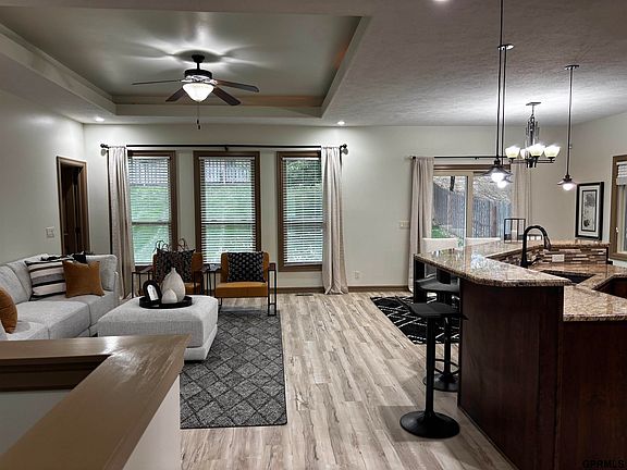 Beautiful home built in 2012 with upgrades throughout. This is not a builder grade home. Well landscaped, sprinklered yard, 6' privacy fenced, private lot, concrete siding, Pella windows, heated garage, heated travertine tile floors in master restroom, granite counter tops, stainless appliances. Basement finish completed in 2019. New LVT just installed. Large Pantry, walk in closet in master bedroom and basement bedroom. 9' ceilings on both floors. Tray ceilings with mood lighting. Under cabinet lighting in kitchens and baths. Plush carpets and padding. Main level washer and dryer. Considerable storage space in basement utility room. Agent has an interest in the sale.
