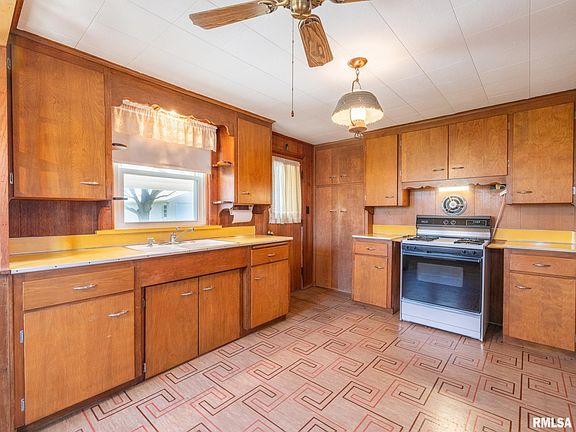 Discover the charm of small-town living with this well-maintained 3-bedroom, 1-bath ranch home in Trivoli. The spacious living room, complete with a cozy wood-burning stove an is ideal for relaxing or entertaining. Nice size kitchen with pantry, original cabinetry, breakfast nook, and appliances all overlooking the large outdoor patio. Large primary bedroom with slider to back porch. Main floor laundry with updated washer/dryer. Cellar entrance indoors for storage or canning. Oversized 2-stall garage provides space for work bench or extra storage. This property combines comfort and functionality in a peaceful setting—ready to welcome you home! Home being sold AS IS. In an estate.