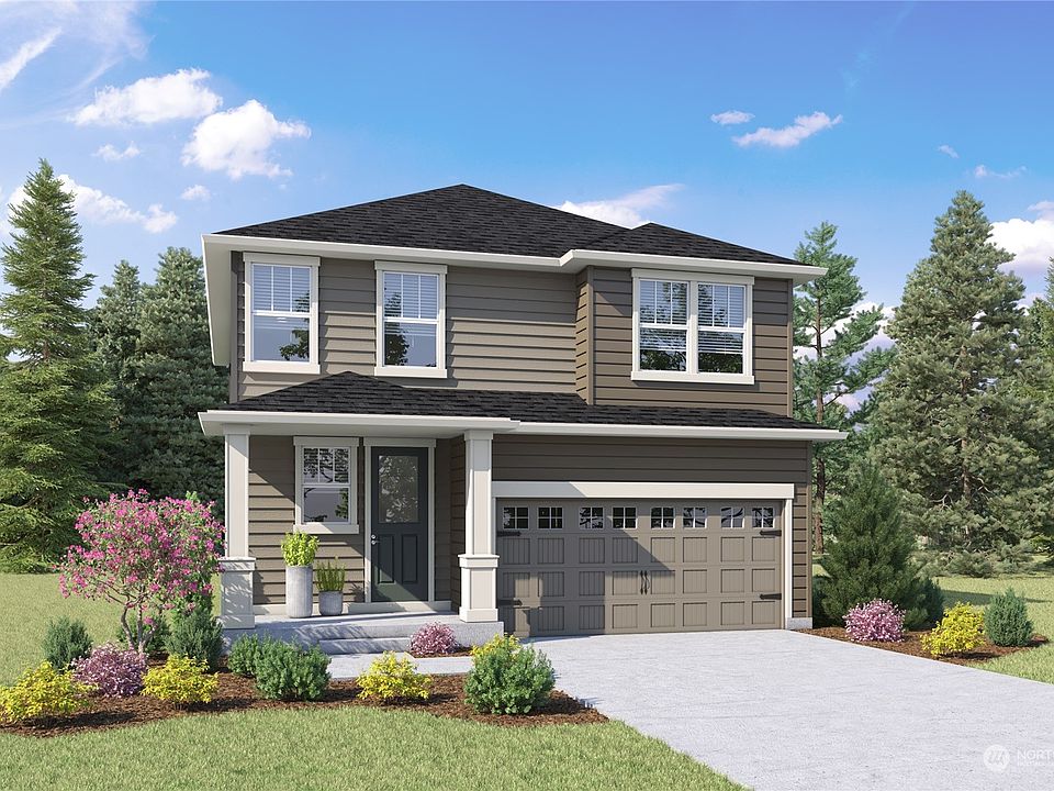 The Hemlock walkout basement floorplan has arrived at North Creek Vista II, East facing Hemlock features 4 beds, 3.5 baths & BONUS, open main level great room W/cozy fireplace, separate dining rm, gourmet kitchen W/ large island, quartz counters, built-in microwave & oven combo W/ GAS COOKTOP, soft-close cabinets, and large deck off the kitchen overlooking the tree lined critical area. Fully finished basement features bonus rm, bed & a bath W/shower, walkout patio. Upstairs primary suite W/attached bath & walk-in closet, laundry, 2 additional beds & a full bath. Home is equipped w/central A/C, Washer & Dryer, heat pump, built-in Smart Home Features, EV plug. Buyers must register broker on site at their first visit! SHOWINGS BY APPT ONLY!