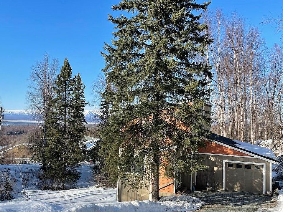 Peaceful Hillside retreat perfect mix of Alaska charm and modern comfort. This 3 bed, 2 full bath home is surrounded with Mountain views. There is ample amounts of storage in this home with a 1 car heated garage., Close commute to Three Bears, 15 minutes to JBER and Bike Paths to enjoy year round. PETS OK on approval.