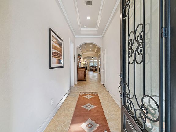 This gorgeous Perry home is so well taken care of that it feels brand new. The entry leads you into a warm & inviting foyer where you will first see a large study with gorgeous beveled glass French doors. Just outside the study is built-in shelving to showcase your favorites pieces. Then you will come to the spacious formal dining room with plenty of room for all of your furnishings. A built in buffet is a great place for serving or additional storage. The kitchen is very functional & open to the family room. Large island with bar seating, under cabinet lighting & a breakfast room. Many upgrades including crown molding, wood flooring in primary bedroom, study & formal dining. Security system, extensive colorful landscaping & magnolia trees along the back fence for added privacy, extra kitchen cabinetry with slide out trash bin, French drains & screened gutters around the full perimeter of the home. Newer dishwasher & microwave. Great highway access & close to walking trails.