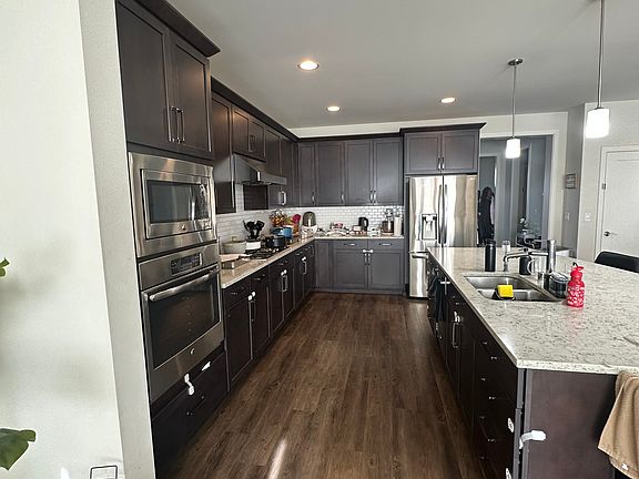 This home offers a spacious open floor plan and a fully fenced backyard, perfect for outdoor living and entertaining. The stunning kitchen features an oversized island, abundant cabinetry, quartz countertops, stainless steel appliances, a 5-burner gas cooktop, and soaring lofted ceilings. Enjoy the natural light that floods the home through large windows, highlighting the beautiful hardwood floors on the main level. Upstairs, you'll find four generously sized bedrooms and a versatile open loft, ideal for a home office, play area, or media room. A highly desirable main floor bedroom with an adjacent 3/4 bathroom provides flexibility for guests or multigenerational living. Additional highlights include a spacious primary suite with a walk-in closet and spa-like bathroom, convenient upstairs laundry, and plenty of storage. Enjoy close proximity to parks, trails, shopping, dining, and easy access to I-405 for a quick commute. 1 year lease with option to renew. Tenants responsible for all utilities and landscaping front and back. Credit score above 700. Non-smoker. Small pets under 30lb with deposit and pet rent. application through listing agent $42 per person. Move out cleaning fee of $675