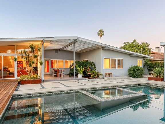 Historic 1959 midcentury by renown Architect, Edward Fickett, AIA. USC and MIT trained, Fickett was called, 'The Frank Lloyd Wright of the 1950s,' by Better Homes and Gardens. He designed more than 60,000 iconic post war midcentury homes in Southern California and his was the first contemporary structure to receive Historic Cultural Landmark status by the City of Los Angeles. This single level sensitively updated indoor outdoor 3 bed, 2 bath home, has a newly built permitted 1 bed, 1 bath ADU / guesthouse. The main home has an open floor plan and walls of glass that wrap around a new pool, spa and landscaped garden with an outdoor seating area, covered patio, hardwood deck, concrete pads and walkways, a fire pit, native plants, fruit trees, and auto irrigation. The completely updated kitchen has custom bamboo cabinetry, professional appliances, Quartz countertops, and Heath tile. The updated baths include designer tile and custom bamboo wall mounted vanities. The home has refinished original wood parquet floors, a gas fireplace, an attached 2-car garage with auto opener, a newer roof, solar panels, newer hot water heaters and pool equipment, and newer dual pane high efficiency sliders, recessed and LED lighting, and upgraded electrical. The home has dual zone central air and heat, and is close to Darby Elementary, Alfred B. Nobel Charter, Robert Frost Middle School, Valley Academy of Arts & Sciences, Granada Hills Charter, and Northridge Academy High School.
