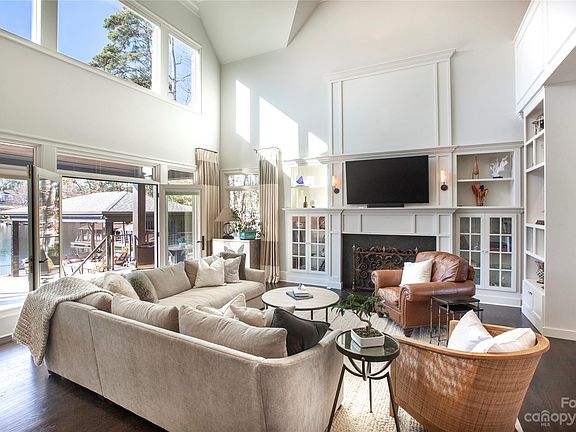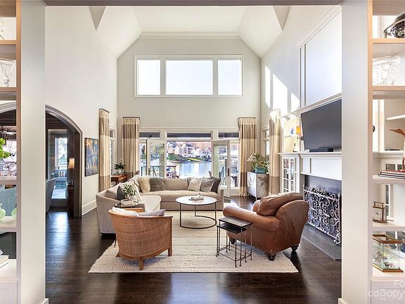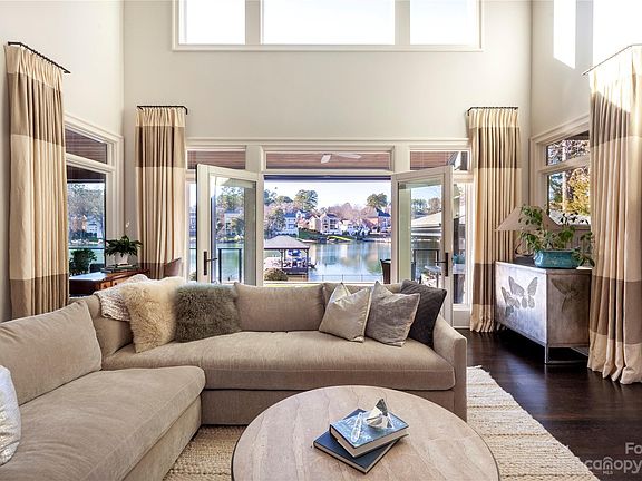 This luxurious estate-style home, lovingly renovated by renowned builder Ted Thompson, offers breathtaking views of Lake Norman and Peninsula Golf Course from almost every room. Anchored by nearly 800+ square feet of covered terraces above a saltwater pool surrounded by silver travertine & pool cabana w/ full outdoor bath. Pool cabane features an outdoor bar. A sandy beach, large private pier & dock with new Hydro Hoist boat lift offer easy access to Lake Norman’s main channel. The main floor primary suite offers a spa-like experience, featuring dual custom closets and a quartzite counter w/ built-in storage. The kitchen includes walnut butcher block island, Thermadore appliances, quartzite countertops opens to a large dining area and lounge with a custom built-in bar and beverage fridge. Home features 200+ bottles of tempature controlled wine storage. The 2nd floor boasts 4 bedrooms & third floor features an additional guest suite. Luxury encapsulates every level.
