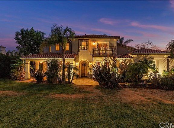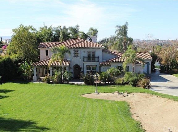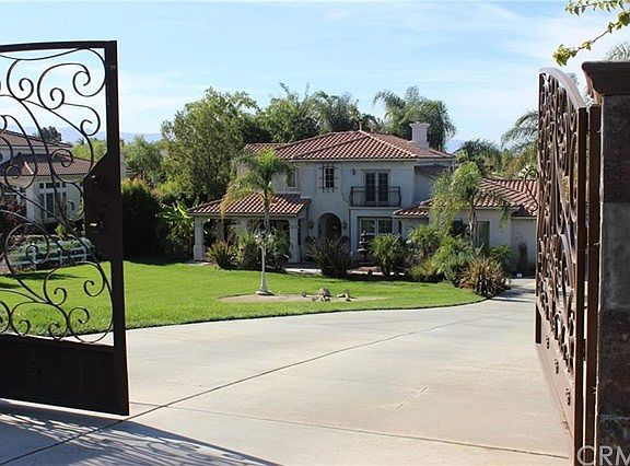 Welcome Home! This Mockingbird Canyon Estates home is ready to wow the pickiest of buyers. This Mediterranean beauty features 4 bedroom/3 bath and has been built to accommodate your growing family. Enter through the beautiful wrought iron automatic gates down to the front courtyard. Upon entry of the home, you will find high vaulted ceilings and a grand staircase that leads to the second floor. The formal living room is open and wraps around to lead into the custom kitchen. The kitchen has upgraded cabinetry, stainless steel appliances, granite countertops and a custom backsplash. The family room is adjacent to the kitchen and has a fireplace and custom entertainment niche. There are 2 bedrooms downstairs, including the large master suite, the laundry room and garage entry to the first 3 car garage. The master suite has access to the pool and backyard area. The master bathroom features a large Roman tub, a separate shower, dual vanity sinks and a large walk-in closet. Make your way upstairs and land at the entry of the loft which can be used for a game room, TV room or a nice study. There are 2 more bedrooms upstairs that complete the home. This home has ceiling fans and LED recessed lighting throughout. This acre lot has a large beautifully designed pool and spa, 2 covered cabanas, a fire pit, and an additional 3-car garage in the rear of the home. The 750 sq ft detached garage has its own driveway entry. Close to shopping, schools, churches and all Inland Empire freeways.