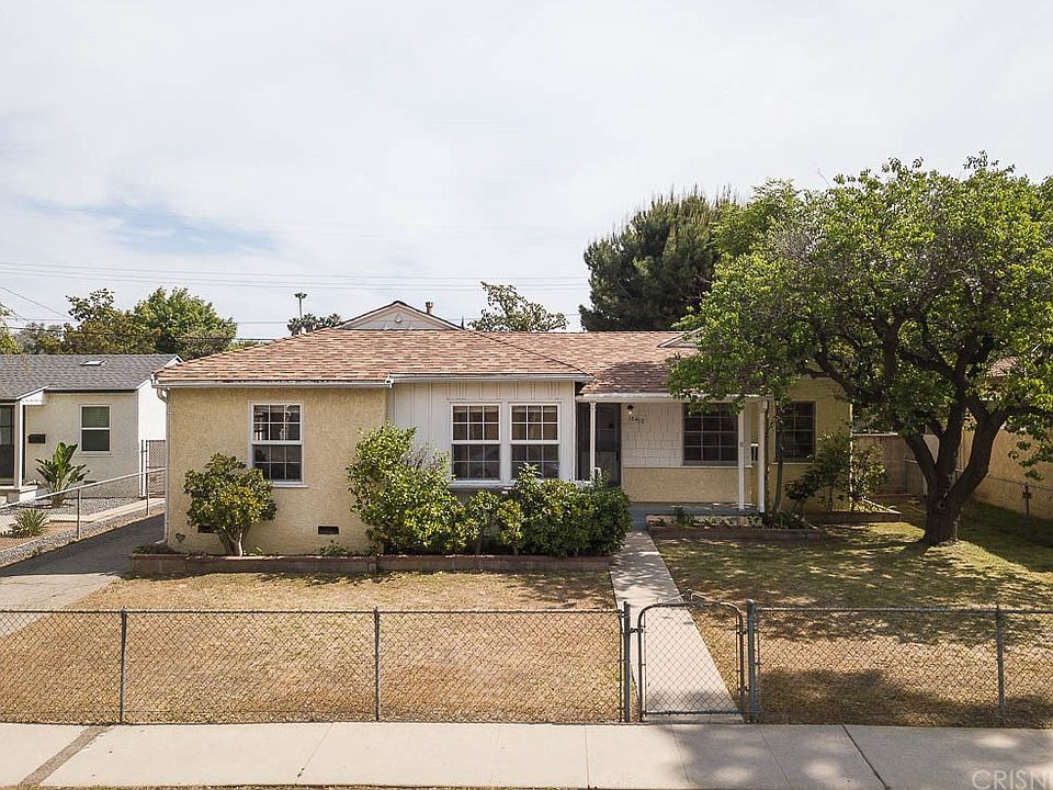 Once and Future Star! Make a happy home in this pleasant budget-saving 3-bedroom 1- bathroom single-story. This engaging home features a relaxing enclosed patio for outdoor living, a long private driveway with plenty of parking and a detached 2 car garage with an automatic garage door opener. Composition shingle roofing appears to be newer, Wood flooring, laundry room, front porch. Block wall and fencing enclose this property, large yard area with nice mature trees. One of the lowest priced houses (SFR) in Tarzana, down the street from Ventura Blvd and near transportation (Orange Line). A Smart Buy, Great Life!
