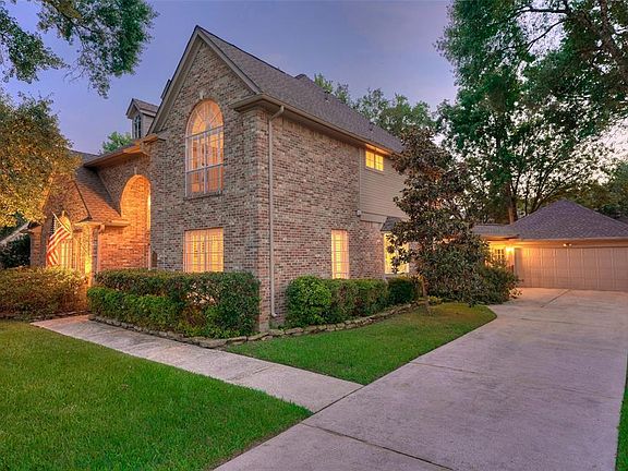 Pride of ownership! No Flooding! Stunning David Weekley five bedroom with gorgeous manicured private lot, soaring front entrance and detached garage. Open floor plan with vaulted ceilings, and hardwood flooring features plantation shutters and extensive crown moulding throughout. Sparkling grand foyer with amazing winding staircase, huge formal dining area with chair rail and flexible living or study. With enough room for two office spaces, this unique four bedroom features two living areas, a large den with arched windows and stone surround fireplace, and a large Owners retreat with luxurious private bath. Mirror smooth granite counters reflect upgraded lighting features in the fabulous chefs space with bay window, stainless appliances and cooktop island with open shelving. The dramatic upstairs includes hardwood flooring, wet bar and flexible spaces for study, play and rest. Great backyard with flagstone patio and wood pergola. New roof in 2015 and HVAC units updated. Call today!