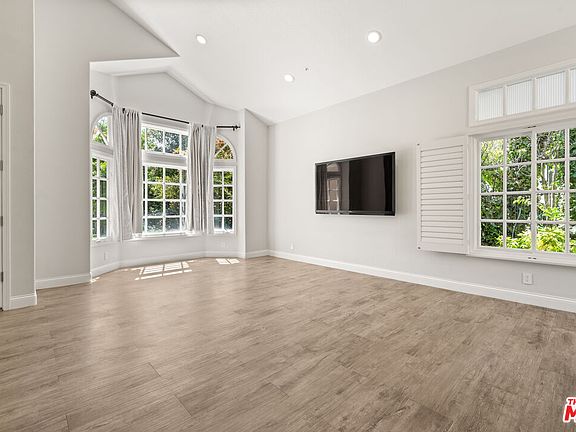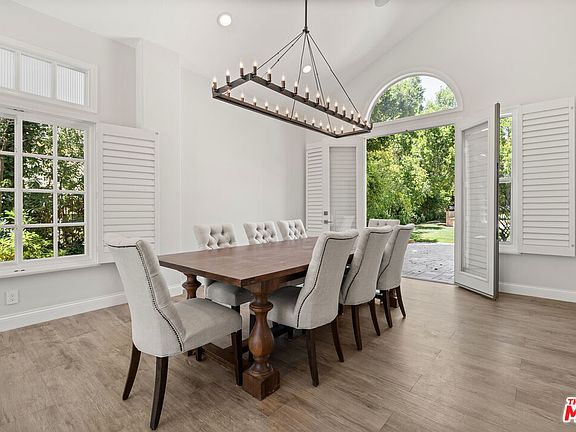 Set within the coveted guard-gated community of Silverhawk Estates in the Tarzana Hills, this remodeled residence offers a refined blend of scale, comfort, and design. A grand entry foyer introduces the home with soaring ceilings, porcelain floors, and oversized windows that bathe the interiors in natural light. Multiple living areas provide distinct settings for gathering and relaxation, seamlessly connecting to the outdoors and framing verdant views.The chef's caliber kitchen is centered on a generous eat-in island and outfitted with stainless steel Miele appliances, designed to serve both everyday living and larger entertaining with ease. A formal dining room complements the space, creating a natural flow for hosting. The home's private quarters include well-appointed guest rooms and a spacious primary suite defined by vaulted ceilings, a custom walk-in closet, and a spa-like bath with dual marble vanities, soaking tub, and oversized glass showerall oriented to lush garden outlooks.Outdoors, the grounds unfold like a private resort. Expansive patios and lawns surround a sparkling pool and spa, with a firepit, full outdoor kitchen with bar, and abundant space for both large-scale entertaining and quiet retreat. Additional features include a Control4 smart system with integrated audio, a laundry room, and a three-car garage with additional parking for four or more vehicles. Ideally located just moments from Braemar Country Club, nearby parks and hiking trails, and the premier shopping and dining of Ventura Boulevard, this residence offers both privacy and convenience in one of Tarzana's most sought-after enclaves.