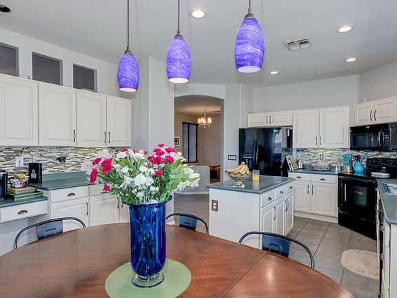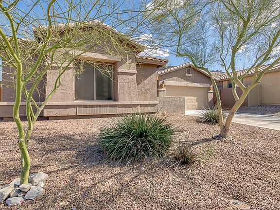This incredible single level home is nestled in the highly desired master planned community of Estrella Mountain Ranch. Minutes from restaurants, shops, community centers, gyms, yacht club, trails throughout as well as two lakes. This 2420 ft four bedroom, two bath plus office /den has open floor plan that is great for entertaining. Large park like backyard with covered patio, tiled/ pebble tech Roman style pool and spa with waterfall . Fruit trees with unobstructed mountains views.