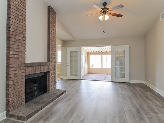 With its charming stucco exterior and attached two-car garage, this Henderson rental home has great curb appeal. Inside, you'll find a fully renovated 1,771-square-foot interior with three bedrooms, two bathrooms, and a laundry room. Relax by the brick fireplace in the living room, and notice the stylish vinyl plank flooring. Double French doors open onto the sunroom. Dark wooden cabinetry and a tile backsplash add style to the kitchen, which comes with a full set of modern appliances. In the master suite, you'll love having functional plantation shutters on all the windows. An extra-high ceiling with a fan makes this space feel even more bigger. Call us today to schedule your personal tour of this fantastic property.
