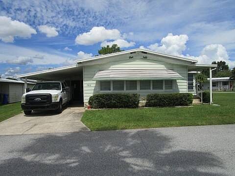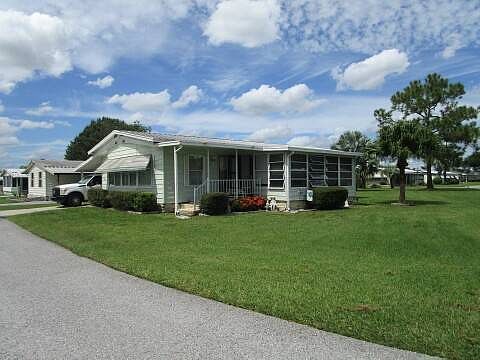 Spacious 2-bedroom, 2 baths partially furnished mobile home situated on a corner lot in a 55+ community. This home is structurally sound and includes an indoor laundry area with Maytag washer and dryer, along with all kitchen appliances. The master bedroom features a large en-suite bathroom with a walk-in shower. The second bedroom also has its own attached bathroom. There are bay windows across the entire front living area of this home bringing in much added natural light. A wall-to-wall built-in shelving unit fills the living and dining walls. Additional spaces include a raised 10' x 18' Florida room, a 12' x 20' storage room, and an attached 10' x 12' shed. This property offers ample living space, storage, and convenience in a quiet community setting. Lot rent only $627. Call Jean to schedule a showing of this 1152 sq. ft. Fuqua home.