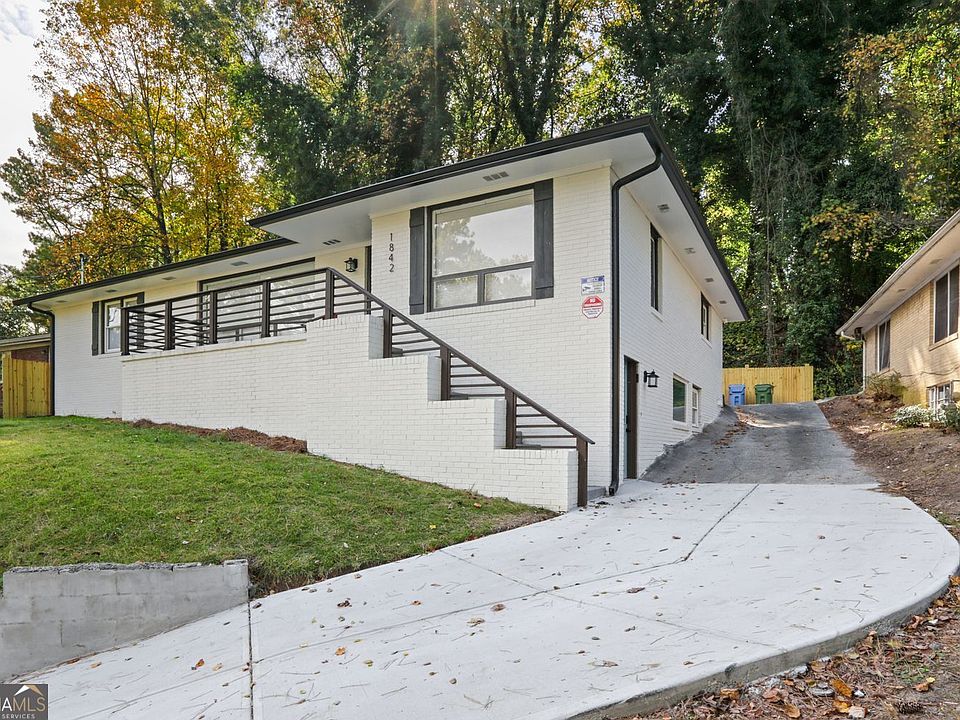 Welcome to 1842 Calloway Drive a beautifully renovated 4-side brick home with incredible income potential and NO HOA! Featuring a full main level plus a private, fully finished terrace level with separate entry, this home is perfect for multi-generational living or house hacking. Live upstairs and rent the terrace level or use both levels for extended family - endless options! Main level features an open concept layout, shiplap accent wall, hardwood floors, and a designer kitchen with granite counters, tile backsplash, soft-close cabinets, and stainless steel appliances. Spacious primary suite with a spa-style bath including soaking tub, glass enclosed tile shower, and double vanity. Two additional bedrooms and full hall bath. Terrace level lives like a second home: private entrance, 2 beds + 2 full baths, oversized suite w/ soaking tub & tile shower, full kitchen w/ island, stainless steel appliances, and LVP flooring throughout. Updated roof, HVAC, plumbing & electrical (approx. 1 year old). Covered 2-car carport. Minutes to parks, shopping, dining & Downtown Atlanta. Perfect for Airbnb, long-term rental, or multigenerational living. No rental restrictions!