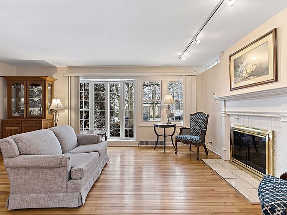 Charm abounds in this two story home in an amazing central Glenview location close to parks, schools, shops, restaurants, and two Metra train stations. The spacious living room features hardwood floors, a pretty bay window offering amazing natural light, and a center fireplace. The kitchen flows into a dining room with a sliding glass door out to an expansive deck. Updated kitchen with shaker cabinets, granite countertops, stainless steel appliances, and space for a table and chairs. The second level of the home has three bedrooms all with hardwood floors and a full bathroom. The spacious primary bathroom has a walk-in closet and direct access to the bathroom with a tub/shower and neutral decor. Further expanding the living space is a finished basement with a large family room with a second fireplace. In addition, there is a laundry room and plenty of storage including a cedar closet. Attached one car garage plus a shed for storage and plenty of additional parking in the driveway. Many recent updates including windows (2018), Furnace (2016) Hot water heater (2022), Kitchen appliances and cabinets (2017), new deck (2019), new roof (2016).