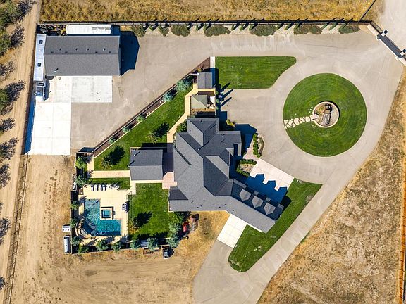 Discover elevated living in this custom-built 2020 estate appx. 4,225 sq ft a stunning blend of comfort, and resort-style design. All the interior wood is Knotty Alder(cabinets and beams). The open-concept living space boasts vaulted wood-beam ceilings, expansive windows, and a chef's kitchen adorned with antique-washed cabinetry, built-in Sub-Zero refrigerator, and Cafe' appliances. The primary suite is a sanctuary with an attached office, a spa-inspired bath with whirlpool air-jacuzzi tub, and a boutique-style walk-in closet. Upstairs a recreation room and loft that overlooks the impressive living area, perfect for entertaining. For efficiency find 2 on demand water heaters, and 2 HVAC units with 4 zones each. Step outdoors to your private resortfeaturing a sparkling pool with grotto, slide, and raised jacuzzi spillover, an outdoor pavilion with full kitchen and wood-burning pizza oven, and a plumbed firepit under the covered patio. Additional amenities include a 30x60 shop w/ bath and waste oil heater, RV/trailer hookups, container barn with covered RV/boat parking, and fenced pastures with animal pens. A secondary 3 bed/2 bath home approx. 1,150 sq ft and shop with service station motif complete this extraordinary property. Semi-truck accessibility throughout exterior.