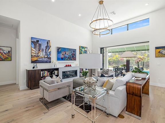 BEST BUY WEST OF TRAIL FOR NEW CONSTRUCTION. Why build when you can move right in. Nearly brand-new custom contemporary masterpiece, completed in December of 2024 and thoughtfully designed with luxurious finishes and top-tier functionality. Located just minutes from world-renowned Siesta Key Beach and vibrant downtown Sarasota, this 4-bedroom, 4.5-bathroom home with a den and bonus room spans approximately 3,200 square feet of exquisite living space. From the moment you arrive, you’re welcomed by a striking iron and glass front door that sets the tone for the high-end design throughout. The open-concept great room floor plan boasts wide plank French Oak flooring everywhere ( except primary bathroom), soaring ceilings, and pocketing sliders that create seamless indoor-outdoor living. The gourmet chef’s kitchen is the heart of the home, featuring a Thermador dual fuel range, Monogram refrigerator, Bosch dishwasher, wine refrigeration, quartzite and quartz countertops, custom cabinetry, a spacious cooking island, and a walk-in pantry. The adjacent dining and living areas are perfect for entertaining or relaxing with family. The stunning main-level primary bedroom suite offers a tranquil retreat with a spa-like bath and custom built closets, while a private den provides an ideal space for work or relaxation. Upstairs, you’ll find three additional spacious en suite guest bedrooms and a large bonus room, perfect for media, hobbies, or a secondary lounge. Tech lovers will appreciate the impressive AV package, including built-in speakers powered by Sonos technology, multiple Frame TVs, and security cameras. They all stay. Green features include a well for irrigation, Icynene spray foam insulation, insulated garage doors, low voltage night lighting, a gas generator, propane cooking, Low E Impact windows and doors, and a 220V EV charger setup in garage. Step outside to your private tropical oasis with lush, professional upgraded landscaping, a saltwater pool and spa with fire features, travertine decking, and a picture-frame screen enclosure. The expansive covered lanai features a full outdoor kitchen with a Coyote grill, sink, and refrigeration—perfect for alfresco dining and entertaining. This barely-lived-in home combines new construction peace of mind with impeccable custom design and location. A rare opportunity to own a true Sarasota gem. This is a lot of house for this price. Not in a flood zone.